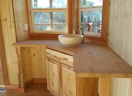 14x16 luxury treehouse with electricity and water, outdoor room with composting toilet, kitchen with sink, 2 wood doors, 5 windows, 1 sliding glass door, hardwood floors, insulated under sub-floor, insulated walls, ceiling fan, pine interior wall board, interior rope trim, huge deck with shade pergola, walkway ramp or stairs for entry, wood shingles with wavy siding pattern, synthetic thatch roof... can be built in tree or elevated on posts.